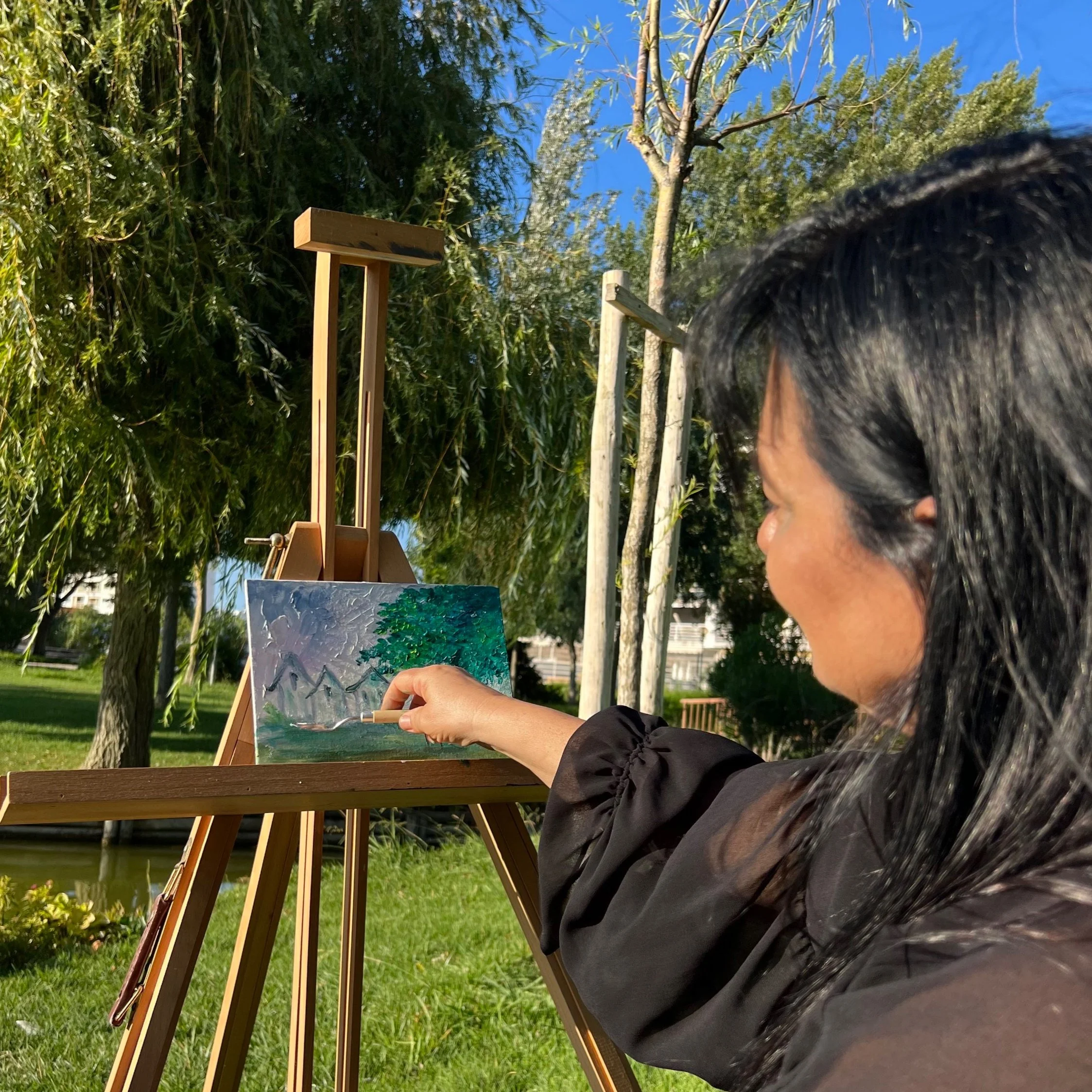 A essência da artista é o impressionismo contemporâneo embora apresente